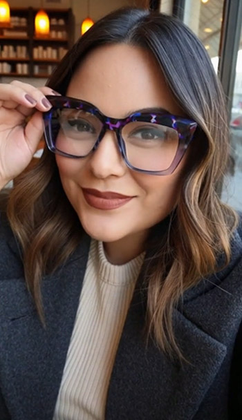 This series of butterfly - style glasses has frames shaped like fluttering butterflies, which are smart and unique. There are various patterns such as tortoiseshell pattern and gradient purple - blue, with gorgeous colors. If used as sunglasses, they can add more fashion sense while shading light, easily brightening the look and matching different dressing styles. They are both decorative and practical, and are excellent items to enhance fashion.